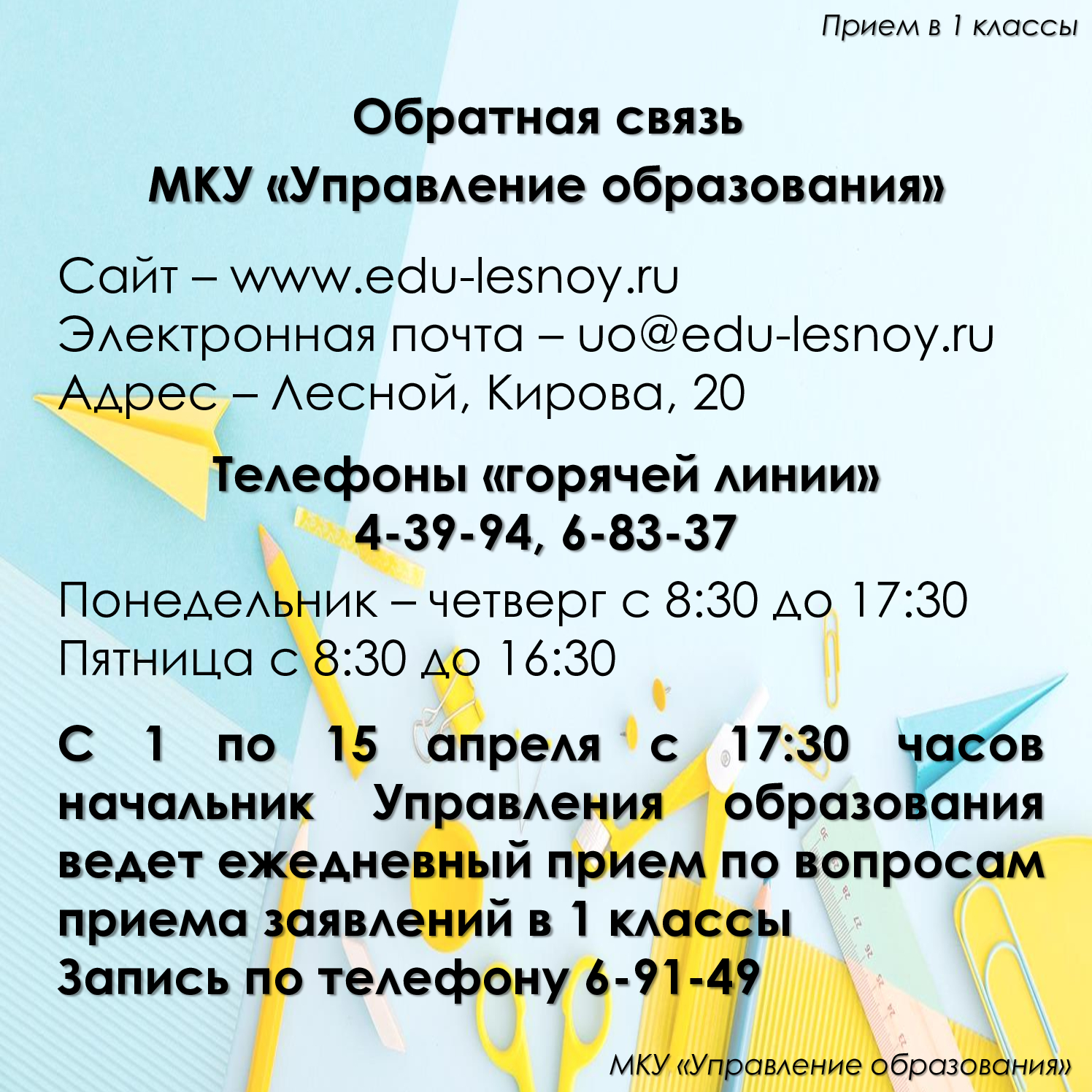 Сайт УО: http://edu-lesnoy.ru